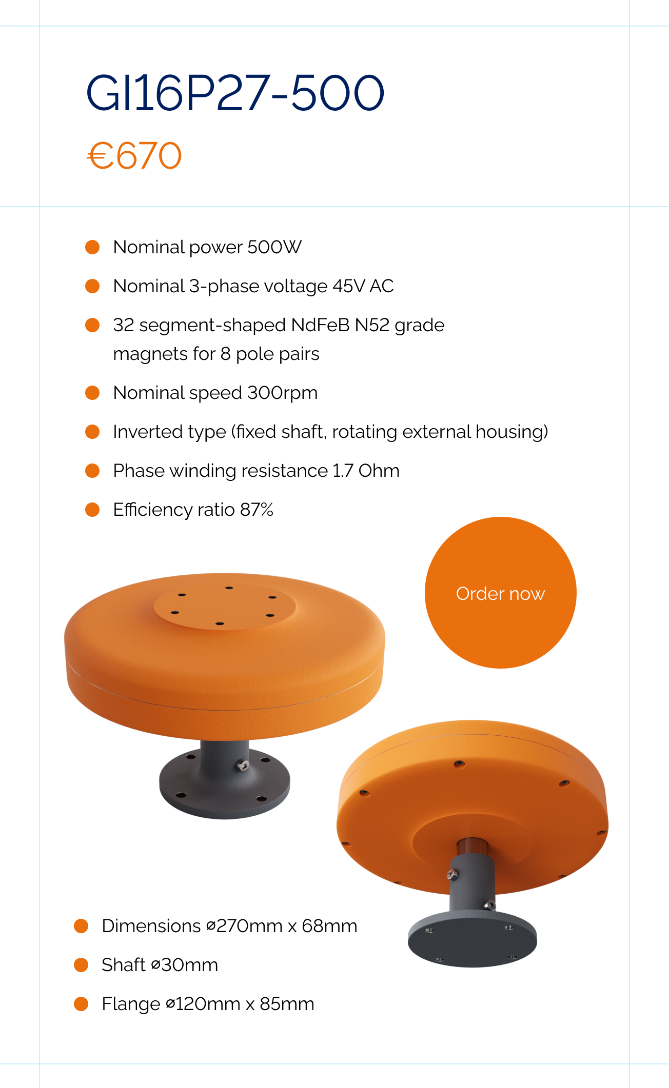 Elfuturis offers customization of its alternators for particular wind turbines or other generation units by adapting